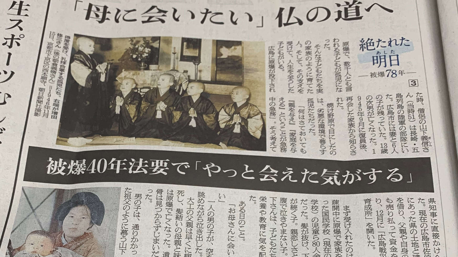 46年11月、京都の西本願寺で得度し、少年僧5人が生まれた。 朝日新聞デジタル(絶たれた明日 被爆78年:3)「母に会いたい」仏の道へ